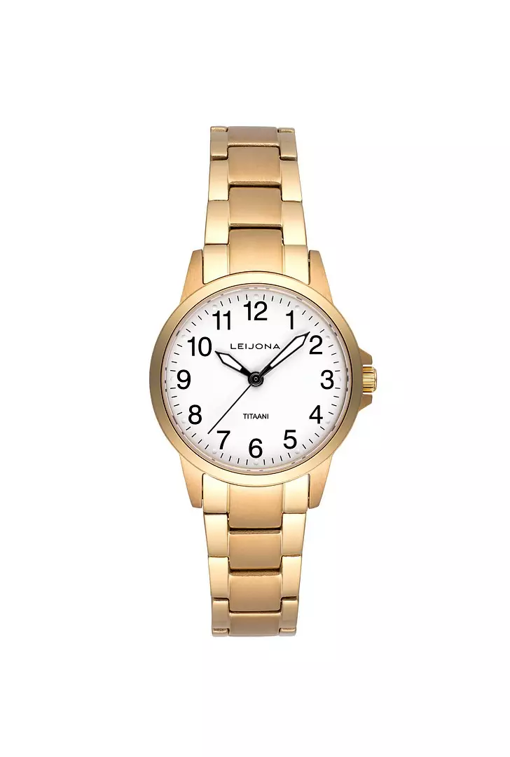 Leijona Ruokolahti - klassinen naisten titaani rannekello kauniin kullan sävyisenä.