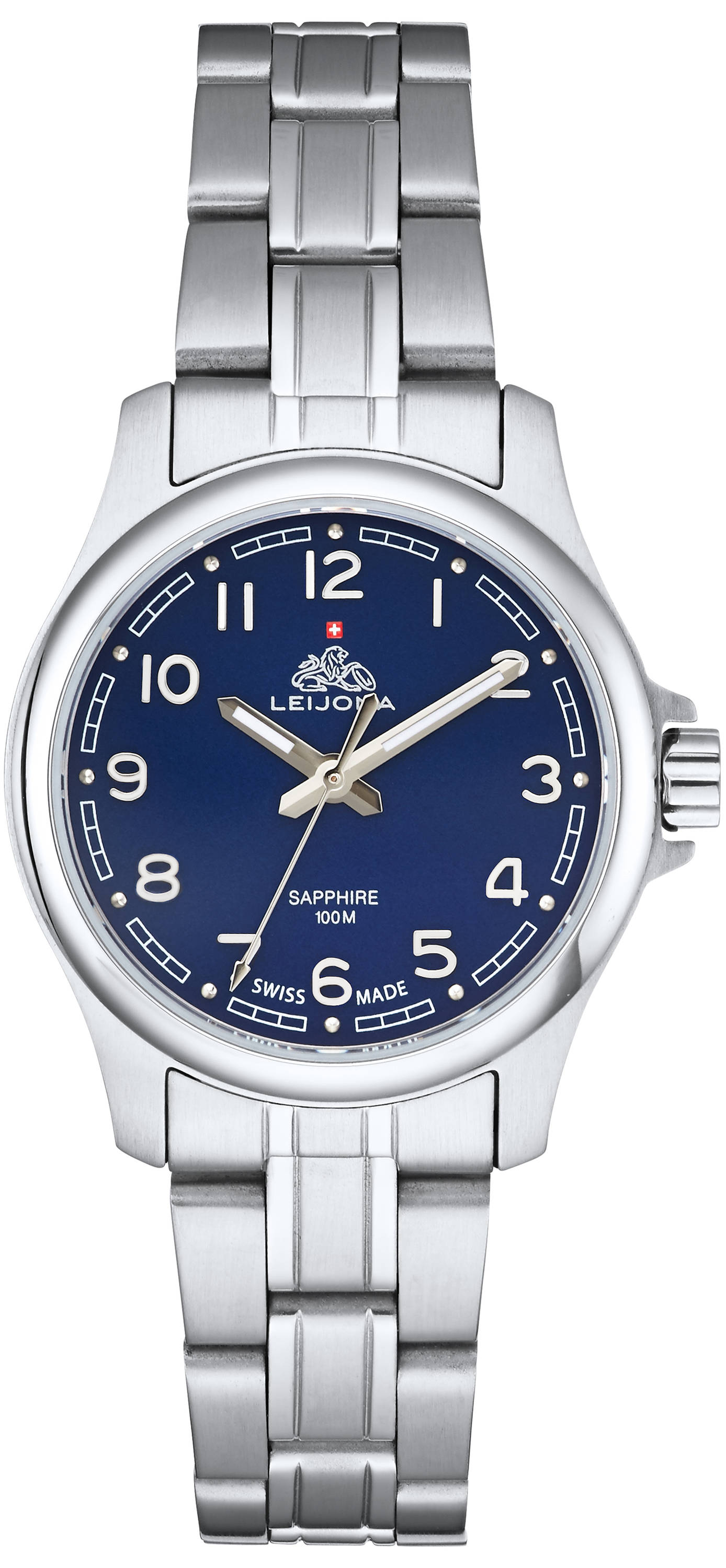 LEIJONA SWISS - teräksinen naisten rannekello sinisellä kellotaululla, kellossa naarmuuntumaton safiirilasi.