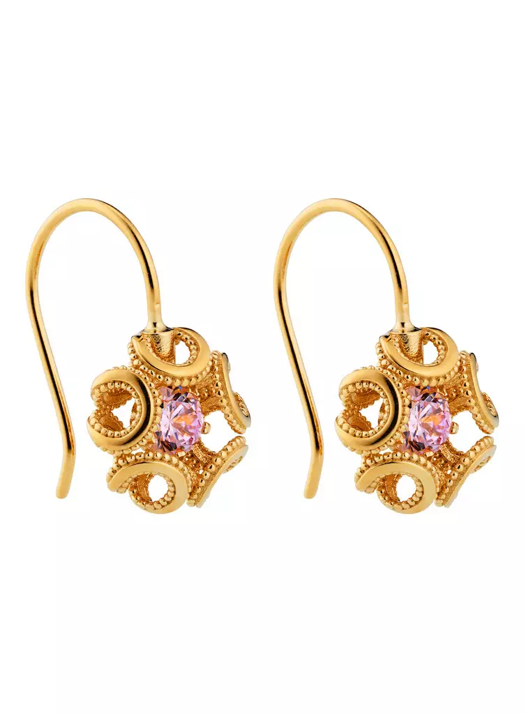 Lumoava Alma korvakorut kullattua hopeaa + pinkit zirkkonit L65251450000
