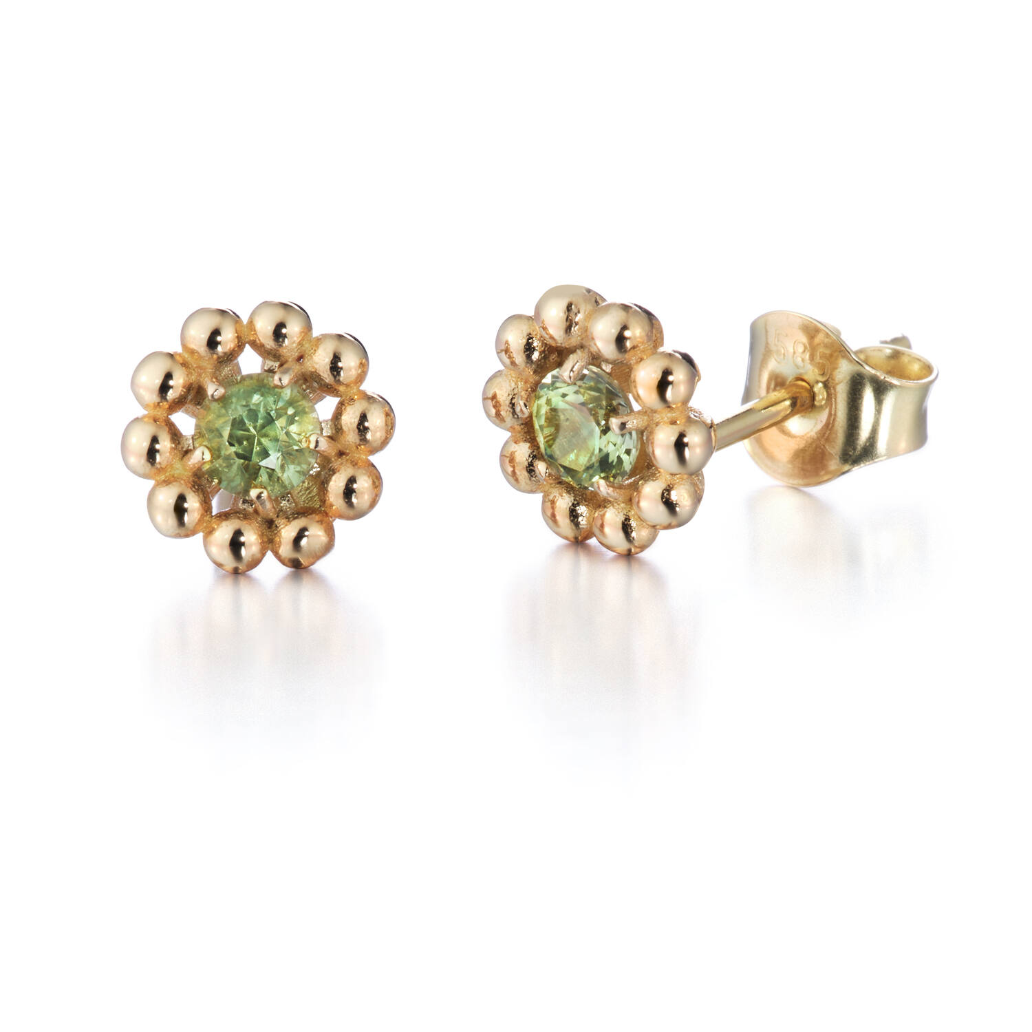 Lumoava Daisy kultaiset korvakorut vihreällä safiirilla L74284133000