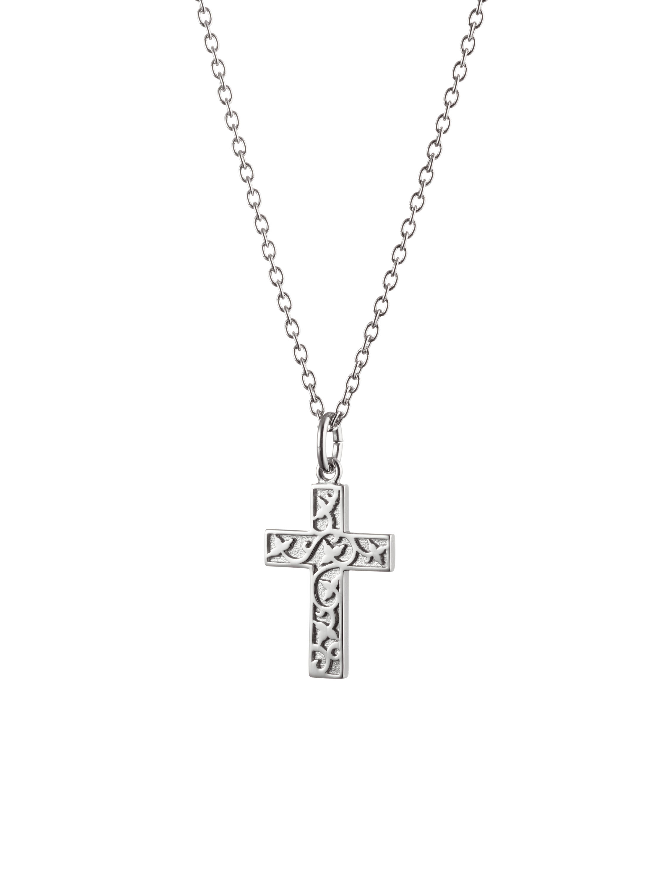 Lumoavan siro hopeinen Hento ristiriipus 42/45cm ketjussa.