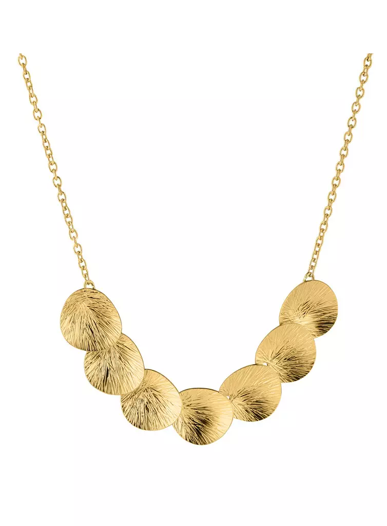 Lily kaulakorussa 7 kauniisti hiottua laattamaista korua on sijoitettu vierekkäin antaen näyttävyyttä niin arkeen kuin juhlaan.