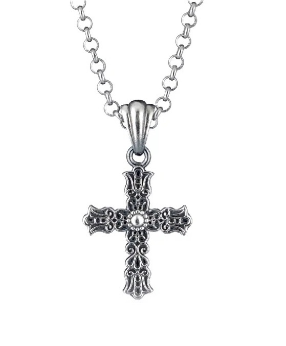 LUMOAVA Metsäkukkia hopeinen ristiriipus. Risti henkii ajattomuutta ja herkkyyttä ja sopii hyvin rippiristiksi.