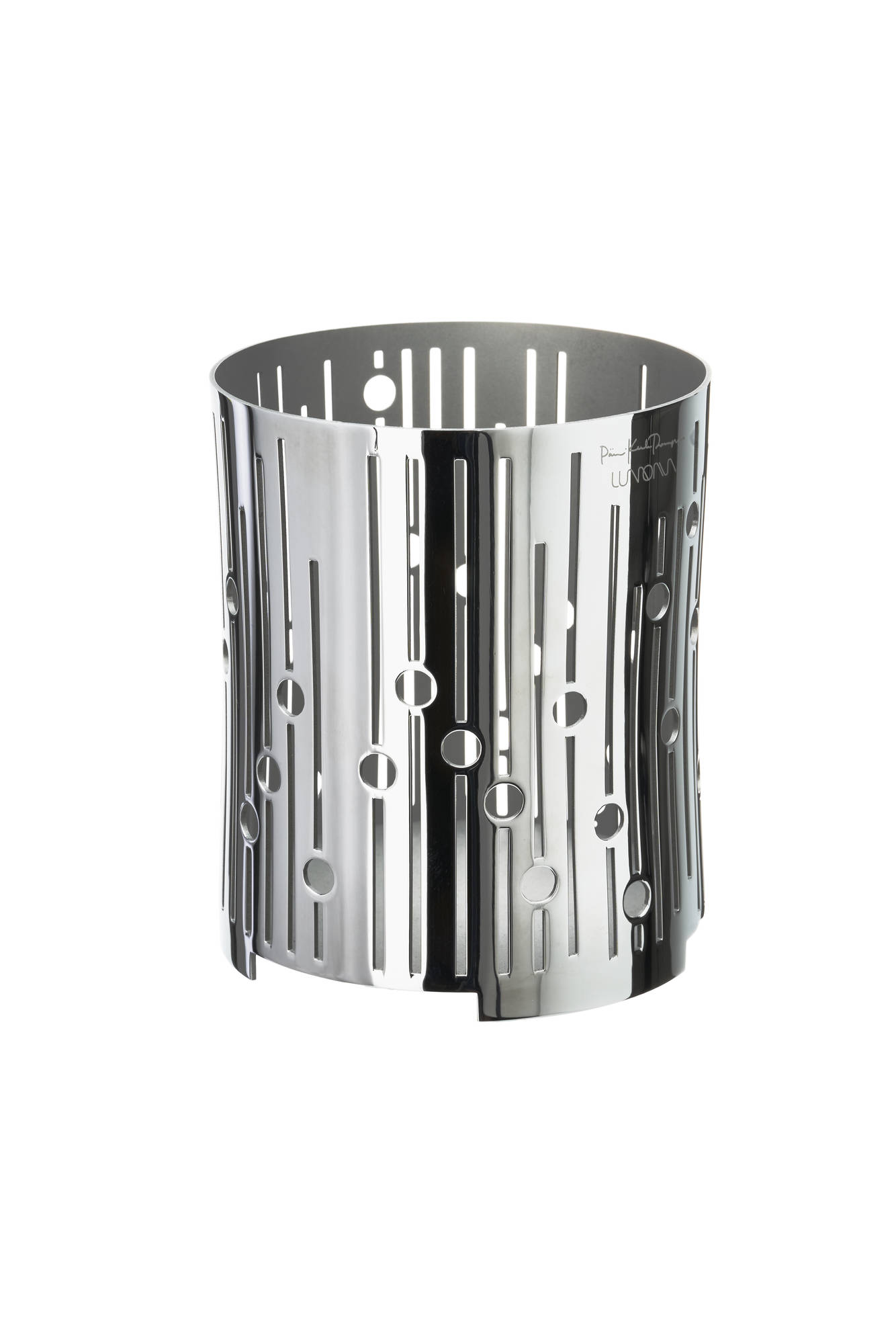 Lumoava Säihke kynttilälyhty 399800000 Päivi Keski-Pomppu Materiaali: ruostumaton teräs Koko: korkeus 95mm halkaisija 80mm "Säihke-kynttilälyhty on muotoilijamme Päivi Keski-Pompun... Lue lisää