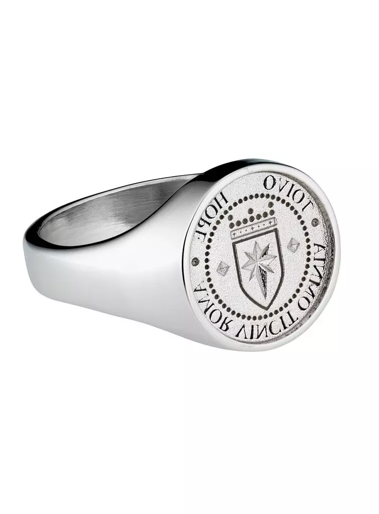 Toivo sarjan sinettisormus, jossa vaakunakuvio ja ”Amor vincit omnia”-teksti. Tämä sormus on toteutettu oikean sinettisormuksen tapaan peilikuvana. Aikoinaan, kun sinettisormuksella painettiin sulaan vahaan oma sinetti, kuvio toistui vahassa oikein päin.