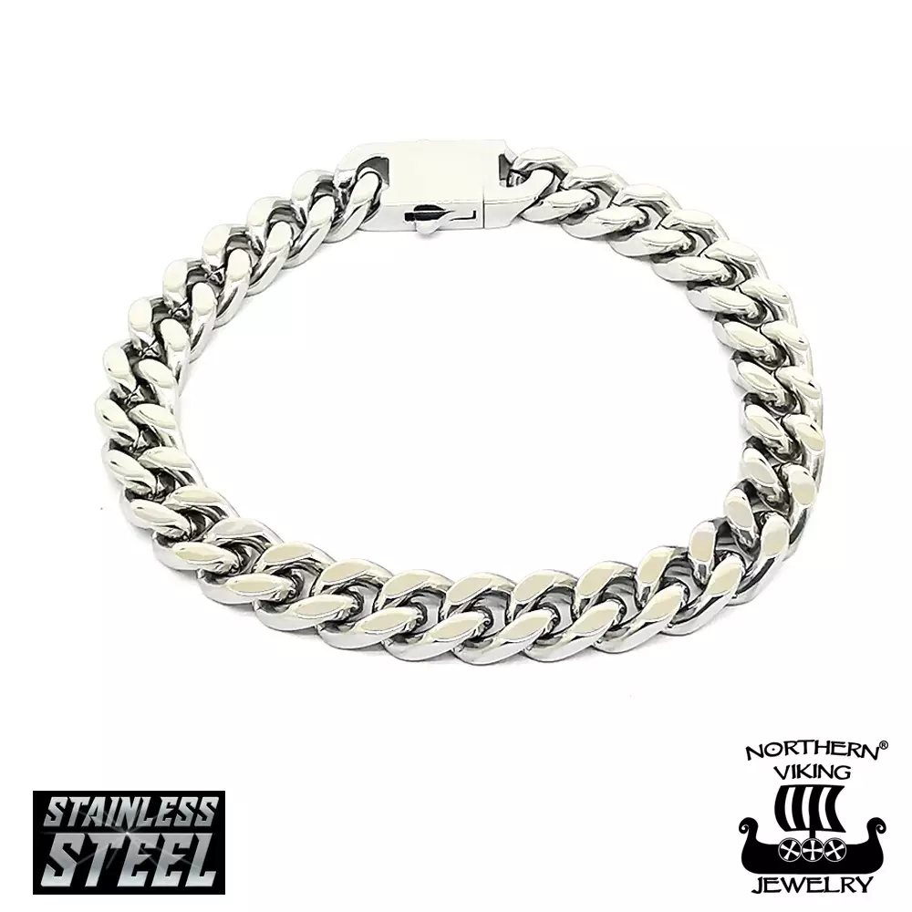 Northern Viking Jewelry 8mm leveä teräksinen panssari ranneketju tukevalla lukolla.