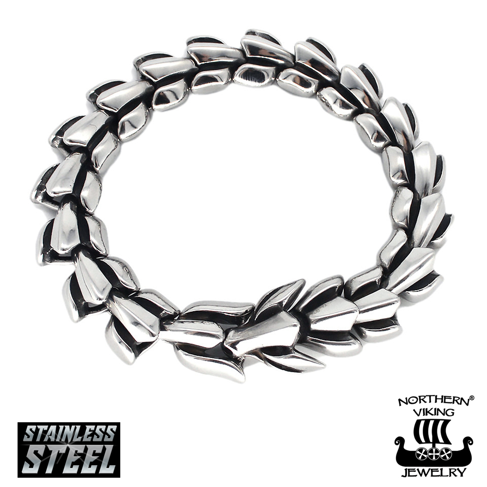 Northern Viking Jewelry näyttävä teräksinen Viking Dragon rannekoru.