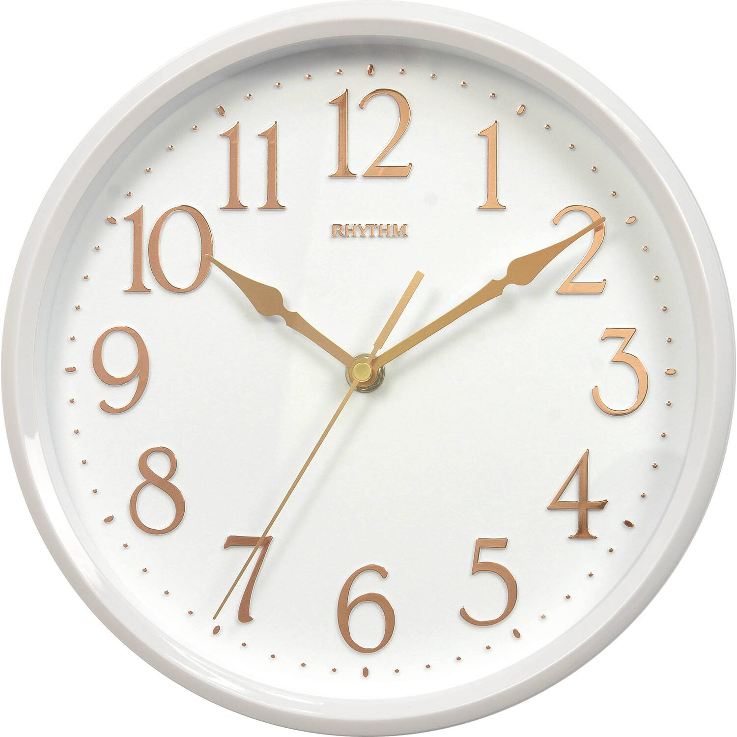 SEINÄKELLO RHYTHM CMG577-BR03 Kellotaulun halkaisija: 25,5cm Materiaali: Muovi Väri: Valkea/ruusukulta, ruusukullan väriset osoittimet ja numerot. Liukuva sekuntiosoitin Paristot: AAx1 Koneistolle... Lue lisää