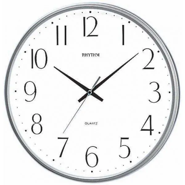 Rhythm seinäkellossa on valkoinen, erittäin selkeä kellotaulu. Tasaisesti etenevä liukusekuntiosoitin on lähes äänetön.