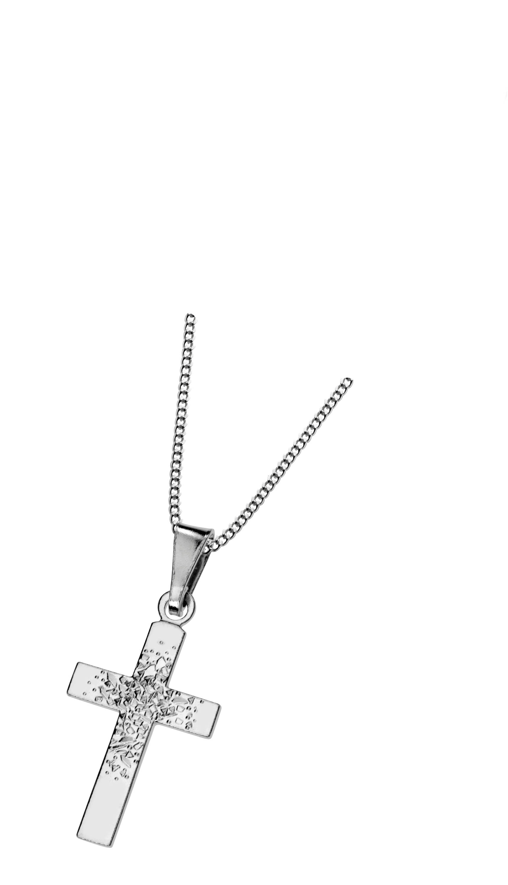 Saurum Oy:n hopeinen risti koriste kuvioinnilla, ketjun pituus 42/45cm.
