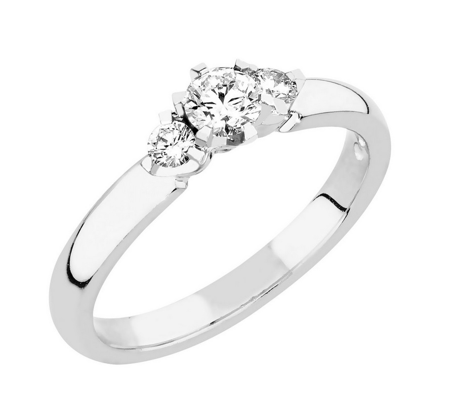 Timantit: keskellä 0,20ct, sivuilla 2x 0,07ct G/Vs timantit (yht. 0,34ct)