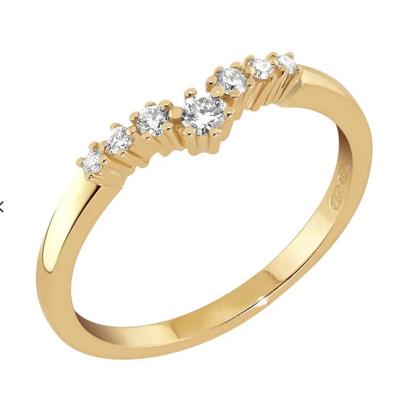 Sandbergin uusi Toivomuslähde malliston vierrussormus! Kaunis keltakultainen timanttisormus jossa yhteensä 0,15ct timantteja istutettu hieman V:n muotoon.