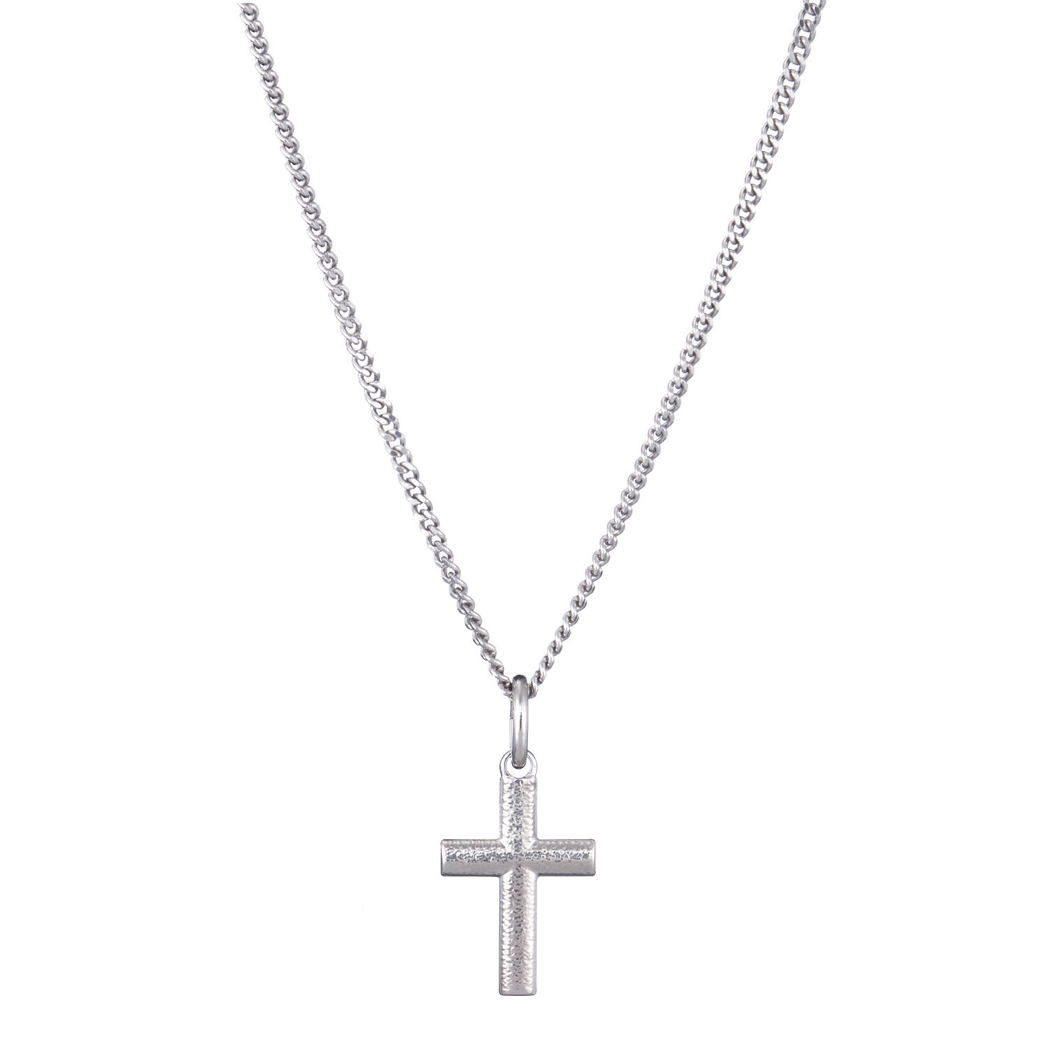 Saurum - hopeinen risti jossa kuvioitu pinta, riipuksessa panssariketju säätömahdollisuudella 42/45cm.