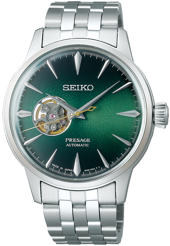Seiko Presage - upea vihreätauluinen miesten automaattikello teräs rannekkeella.