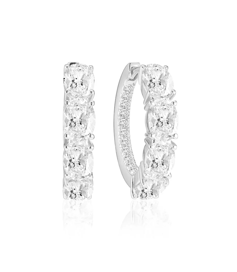 Näyttävät hopeiset zirkon renkaat tukevalla sarana kiinnityksellä, kivet sisäpuolella tuovat korvakoruihin vielä lisää näyttävyyttä!