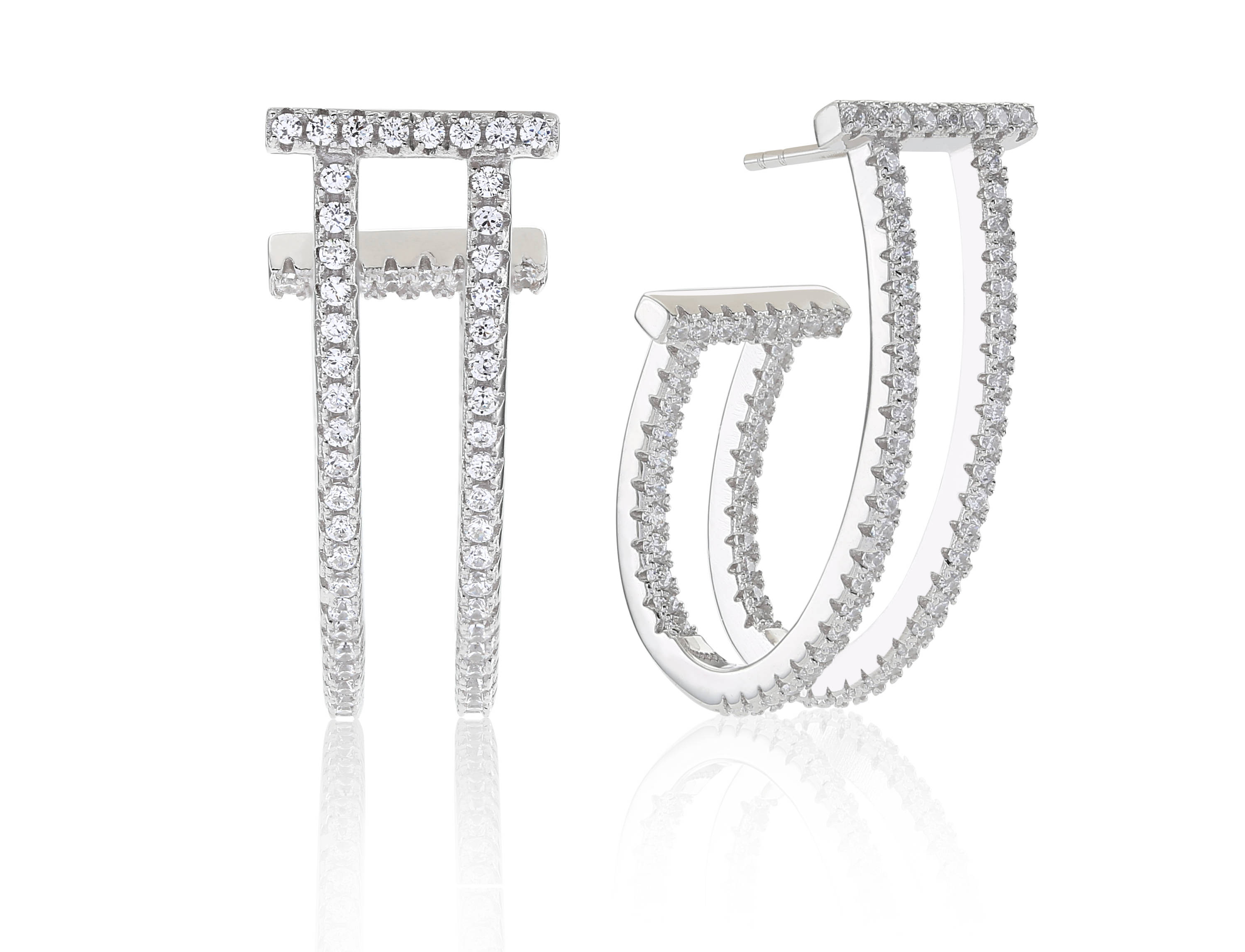Sif Jakobsin näyttävät hopeiset Fucino Lungo korvakorut zirkeilla.