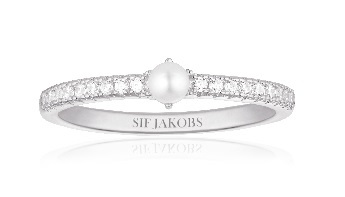 Sif Jakobs hopeinen sormus 18 pienellä zirkonilla ja makeanveden helmellä.