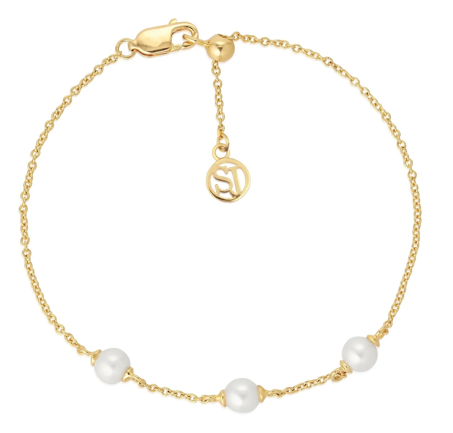 Sif Jakob Padua Tre rannerengas,kullattua hopeaa jota koristaa kolme makeanvedenhelmeä. Pituus säädettävissä liukulukolla