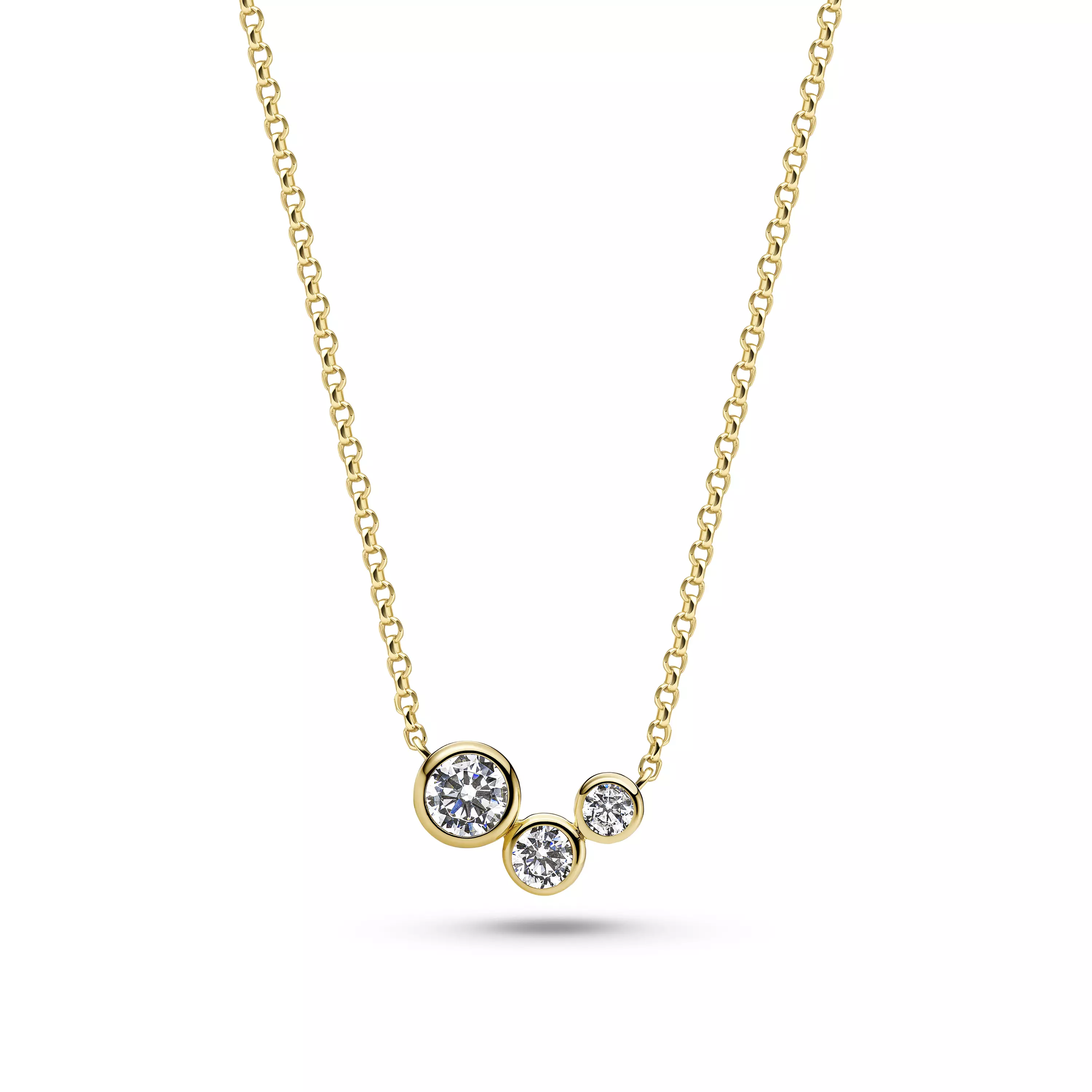Kolme kauniisti kimaltavaa kirkasta zirkon kiveä sommiteltu sointuvasti. Tyylikäs, kullattua hopeaa oleva kaulakoru joka huomataan vaikka onkin siro.
