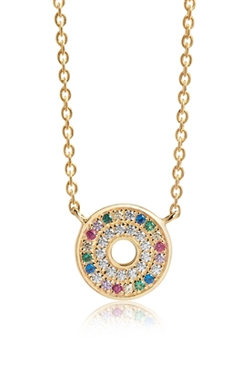 Sif Jakobs Valiano kaulakoru kullattua hopeaa, riipuksessa erivärisiä zirkoneita.