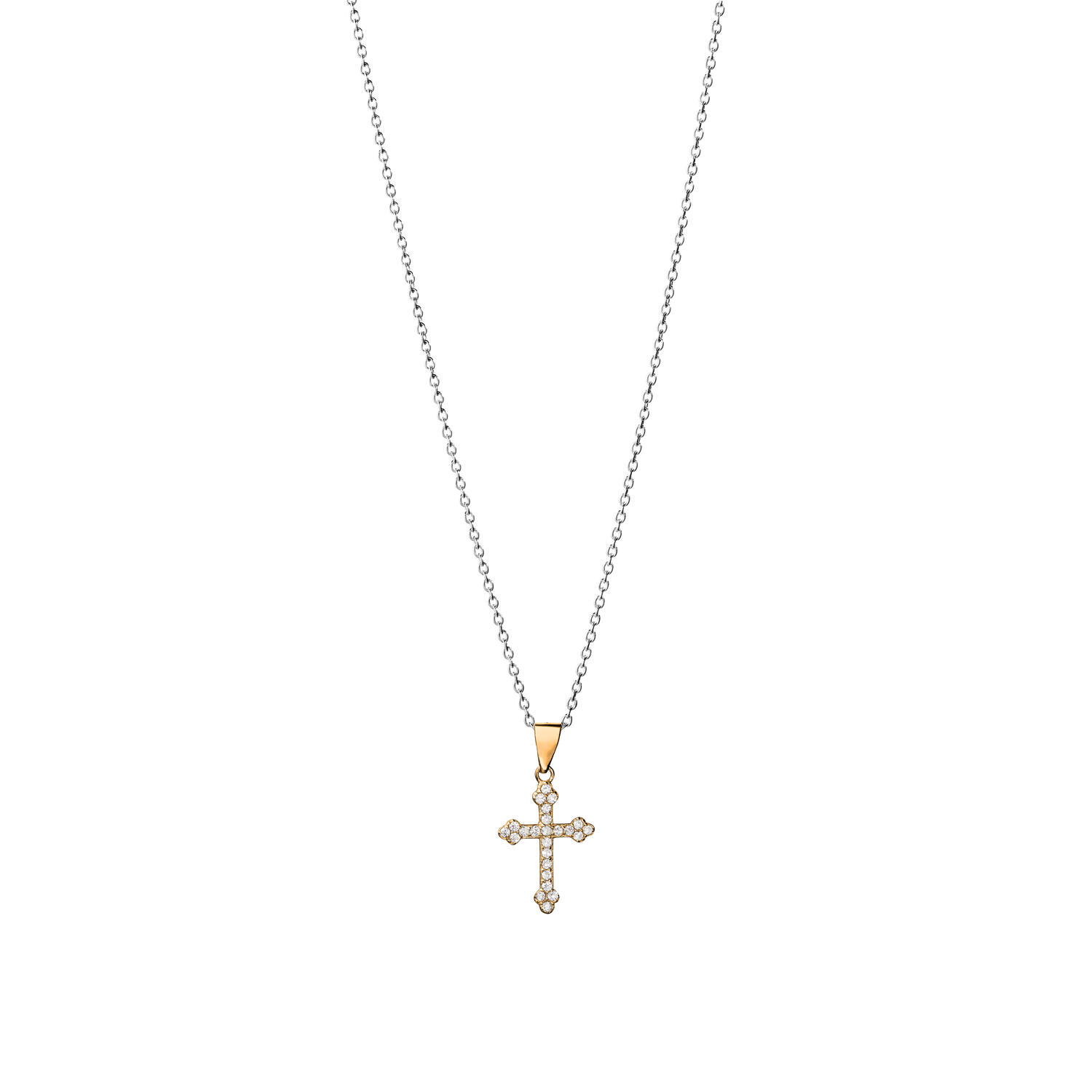 Sorea hopeinen risti riipus ST500206700 Materiaali: hopea, kullattu Kivet: kirkkaat zirkkonit Koko: 12x18mm Ketju: 42/45cm