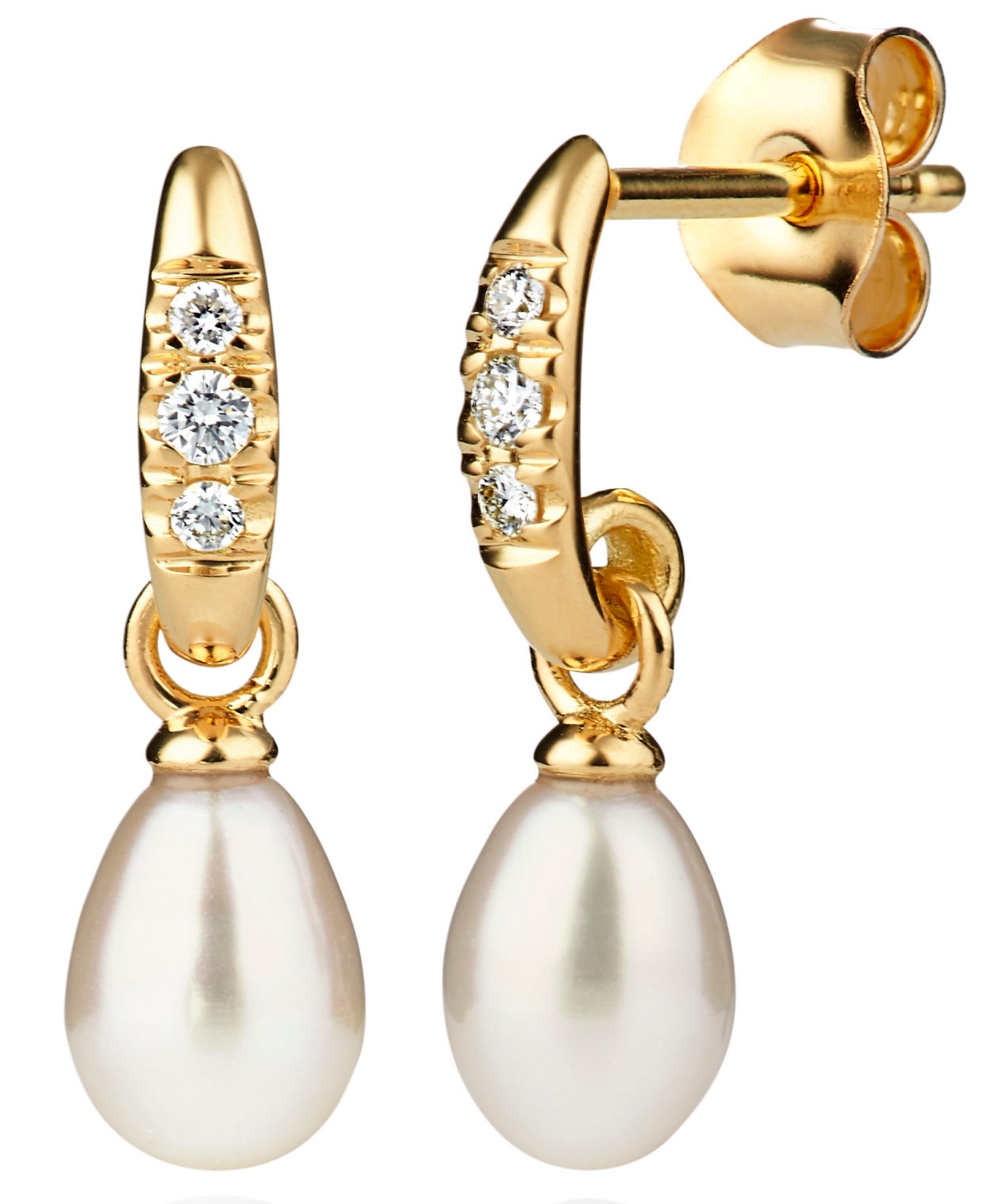 Timantti korvakorut roikkuvalla helmellä.143-267-08