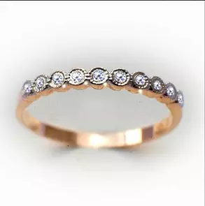 Siro keltakultainen (14ka) timanttisormus pitsimäisellä istutuksella, timantteja 10 kpl