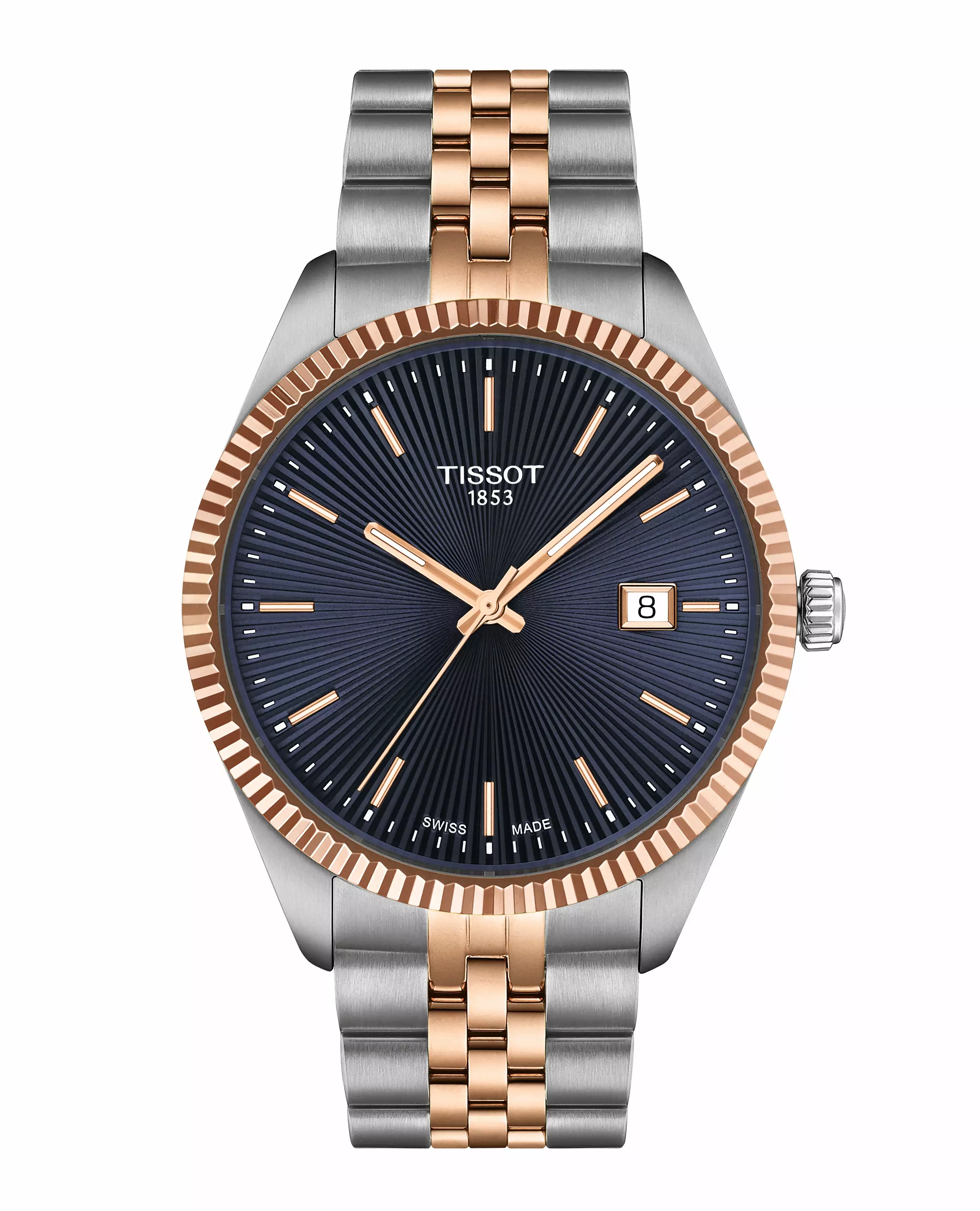 Tissot Ballade - tyylikäs miesten rannekello jossa kaksivärinen ruusukulta/teräs ranneke yhdistyy kauniisti tummansiniseen kellotauluun.
