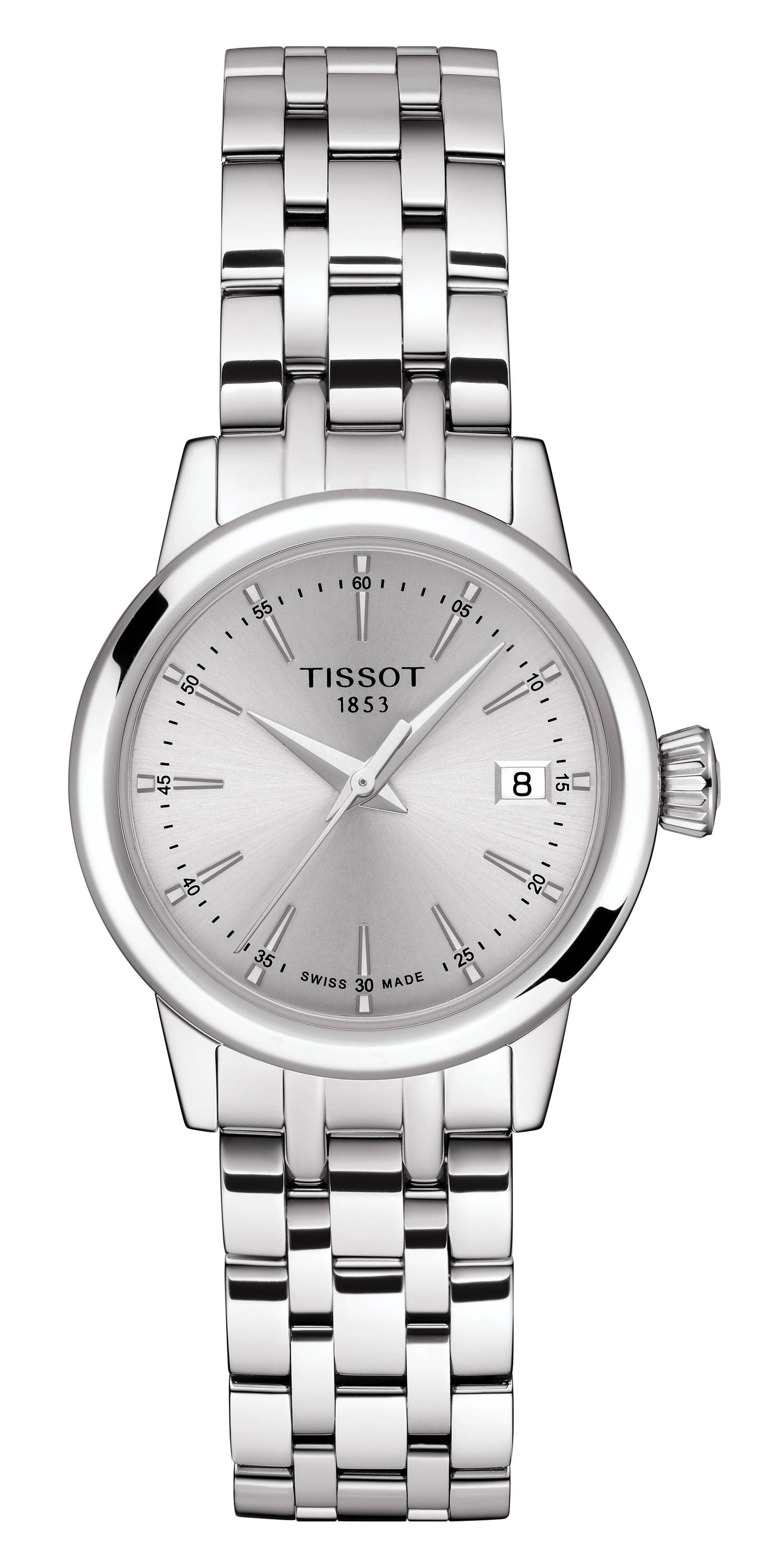 TISSOT Classic Dream naisten teräksinen rannekello tyylikkäällä harmaalla kellotaululla ja päivyrillä,kaunis kello vaikka lahjaksi