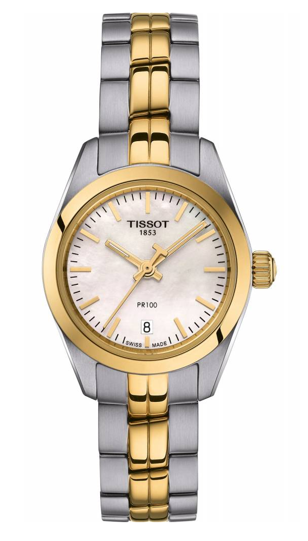Tissot PR100 malliston uutuus, pieni ja siro naisten kello helmiäistaululla.