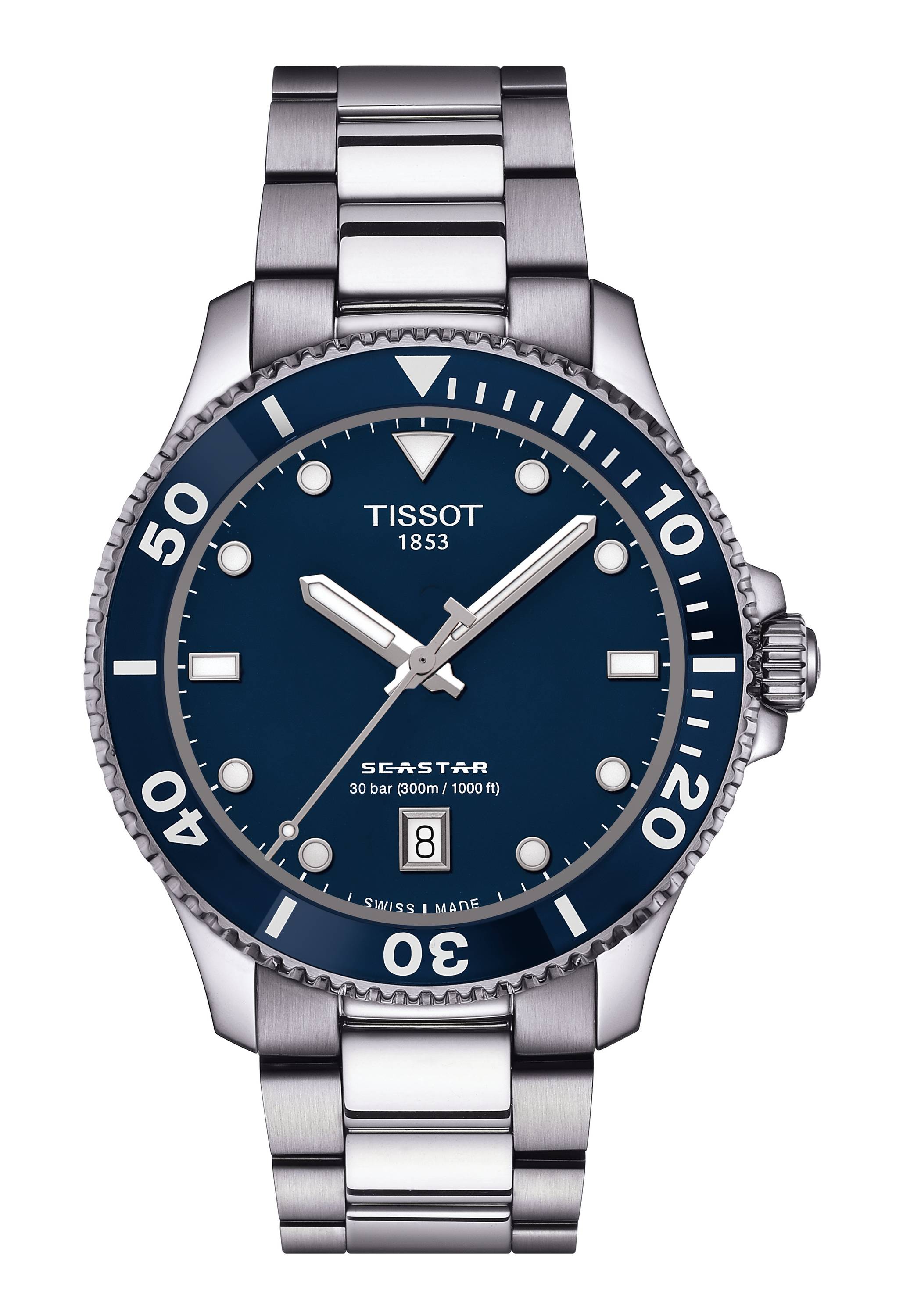 TISSOT SEASTAR 1000 miesten rannekello tyylikkäällä sinisellä kellotaululla ja safiirilasilla