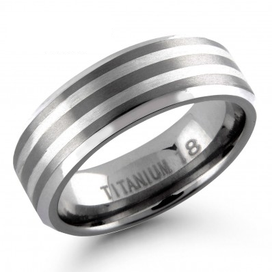 Beat of Love titaanisormus 7mm leveä runko, harjattu pinta jossa kaksi hopea raitaa