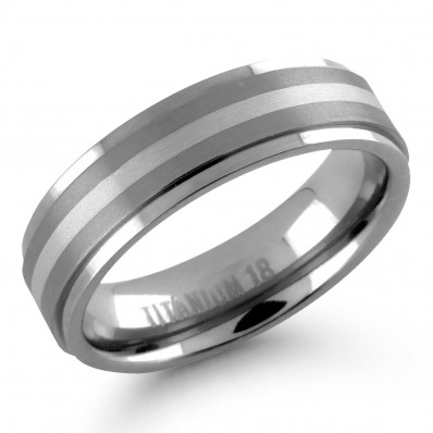 Beat of Love titaanisormus 6mm leveä runko, harjattu pinta jossa hopea raita