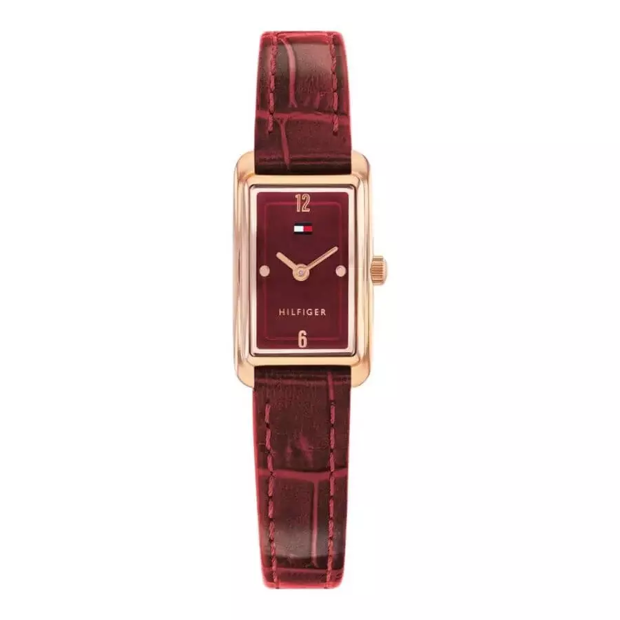 Tommy Hilfiger - upea naisten kello punaisella kellotaululla ja rannekkeella.