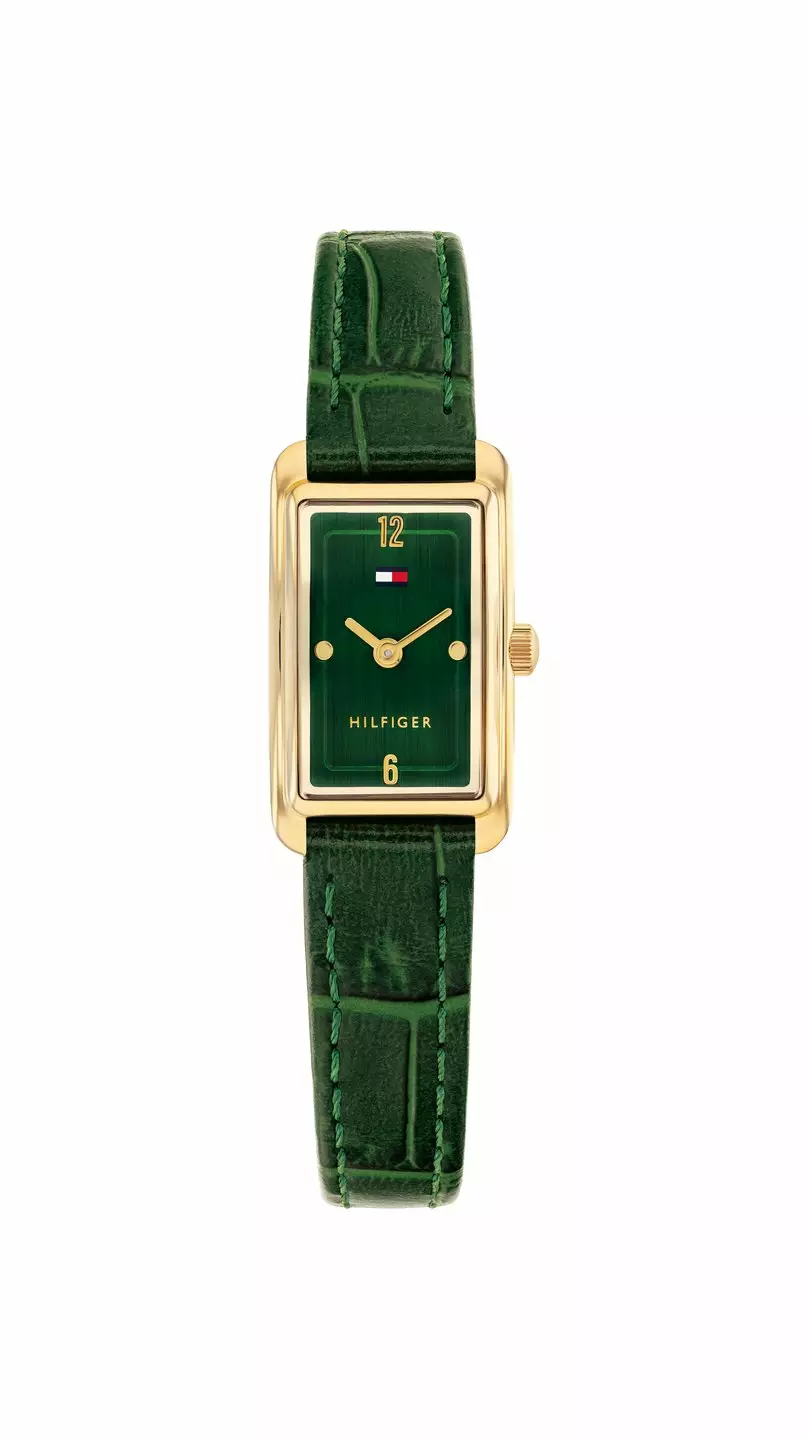 Tommy Hilfiger - upea, kantikas naisten rannekello jossa ihanan tummanvihreä kellotaulu ja nahkaranneke.