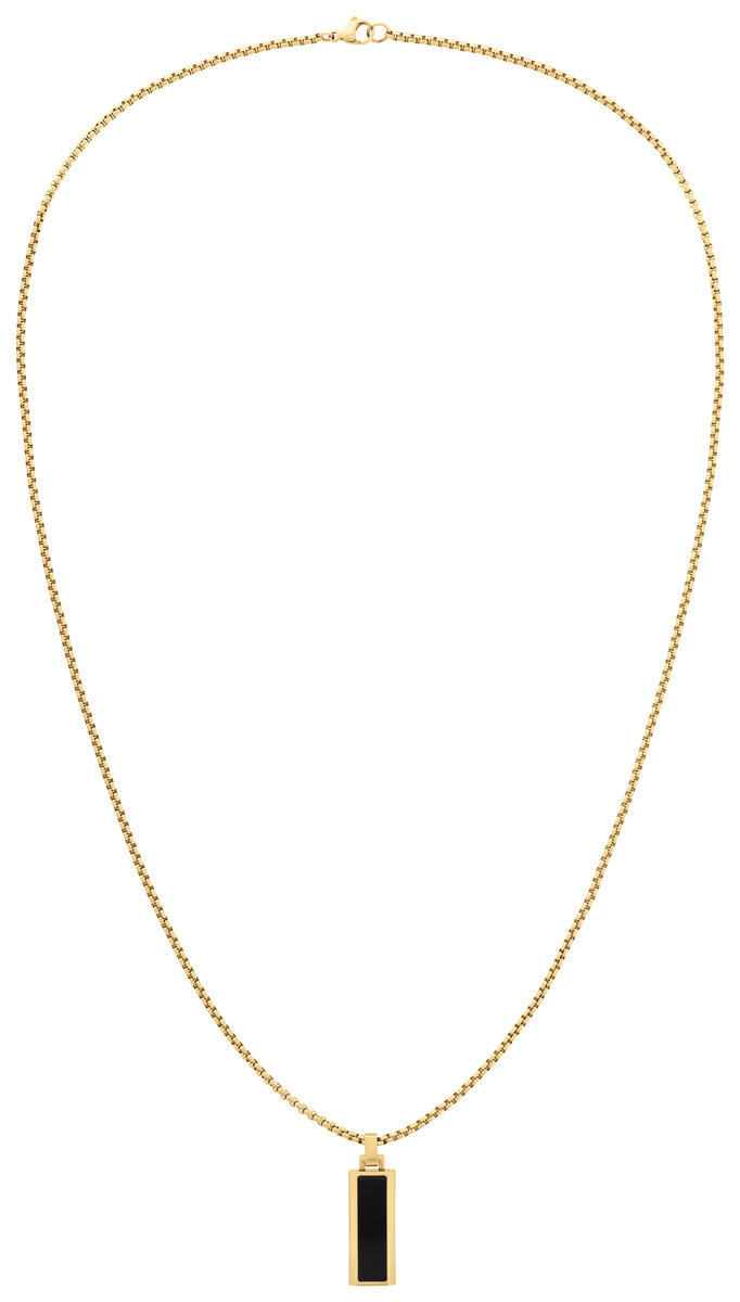 Tommy Hilfiger kullanvärinen kaulakoru ruostumatonta terästä, laatassa musta onyx.