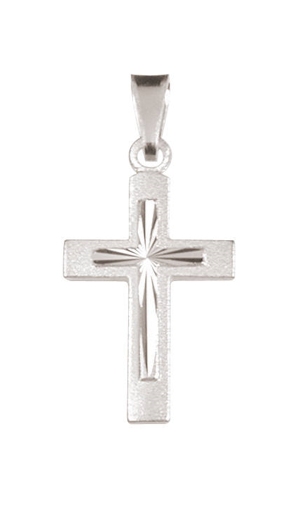 Saurumin kauniilla koristekaiverruksella koristeltu Saurum 8177 00 000 risti on valmistettu 14 karaatin valkokullasta